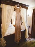 Sheath Round Neck Backless Rose Gold Sequin Long Bridesmaid Dress PFB0135