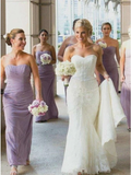 Sheath Sweetheart Floor-Length Lilac Ruched Chiffon Bridesmaid Dress PFB0152