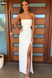 Promfast A Line Strapless White Prom Dress, New 2021 Formal Evening Dresses PFP1942