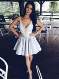 V Neck Short A Line Prom Dress,Sleeveless Lace Appliques Cheap Homecoming Dress PFH0004