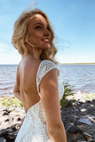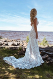 Promfast Boho Lace Sheath Sweep Train Sheath Beach Wedding Dresses PFW0626