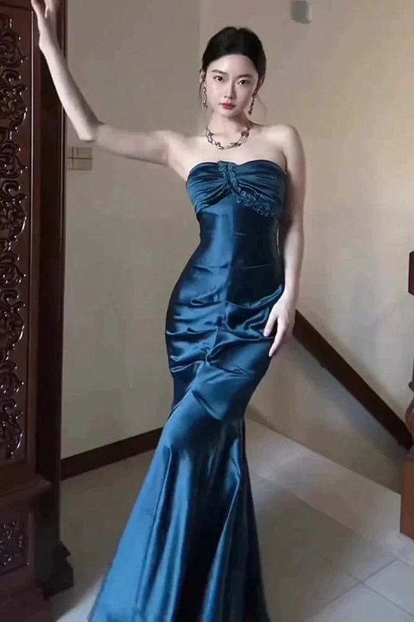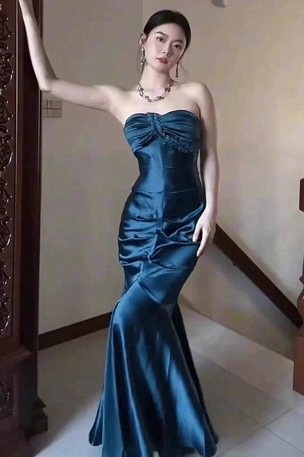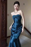 Charming Blue Soft Satin Sweetheart Strapless Long Party Dress, Prom Dress PFP2807
