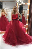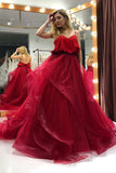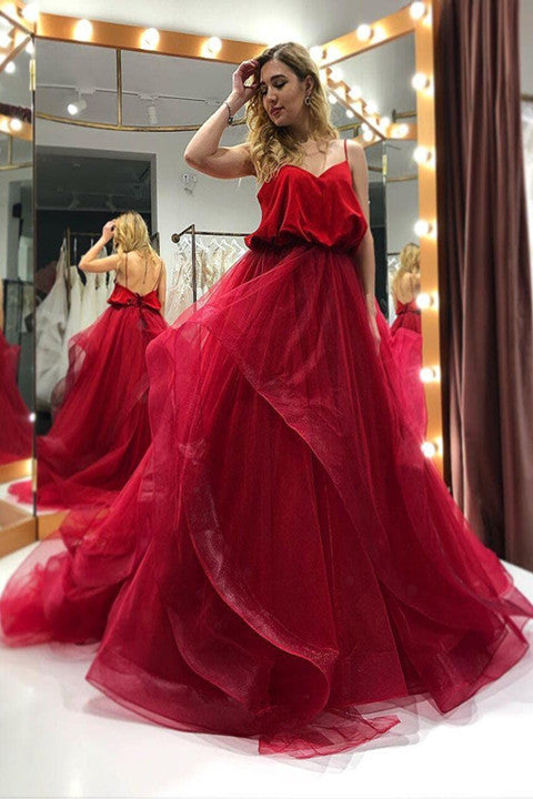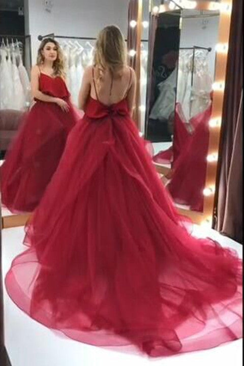 Spaghetti-straps Organza Long Burgundy Prom Gown Backless Party Dresses PFP1757