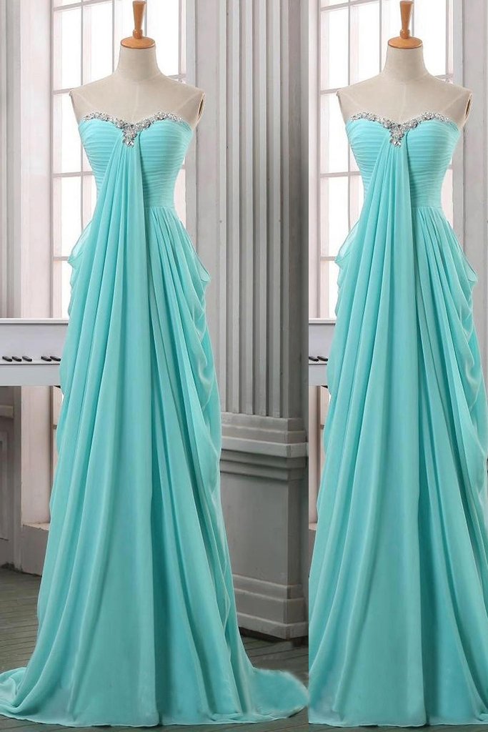 Sweetheart Long Chiffon Beading Elegant Cheap Prom Dresses PFP1265