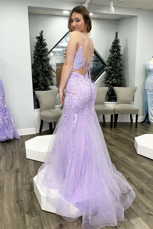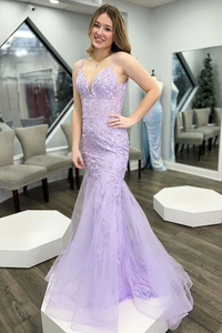 Mermaid V Neck Purple Lace Long Prom Dress, Mermaid Purple Formal Dress, Purple Lace Evening Dress PFP2358