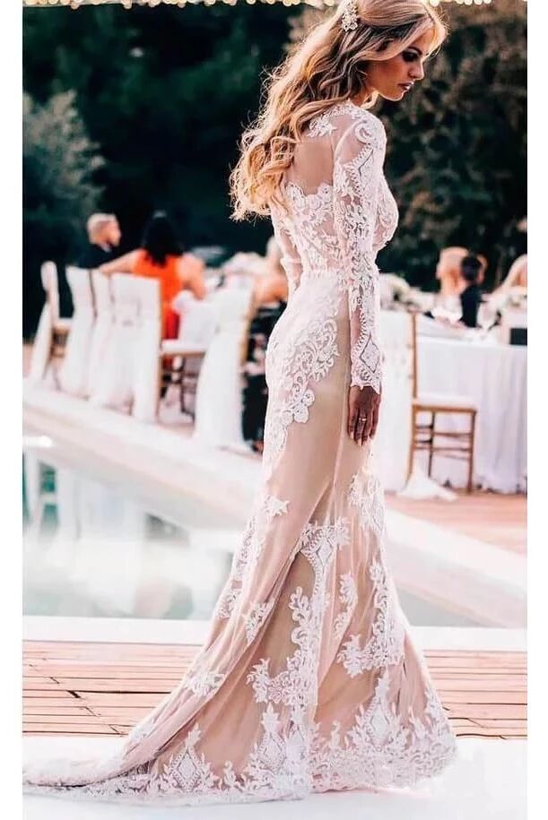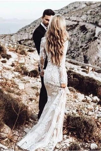 Vintage Long Sleeve Mermaid Lace Applique Wedding Dressses PFW0388