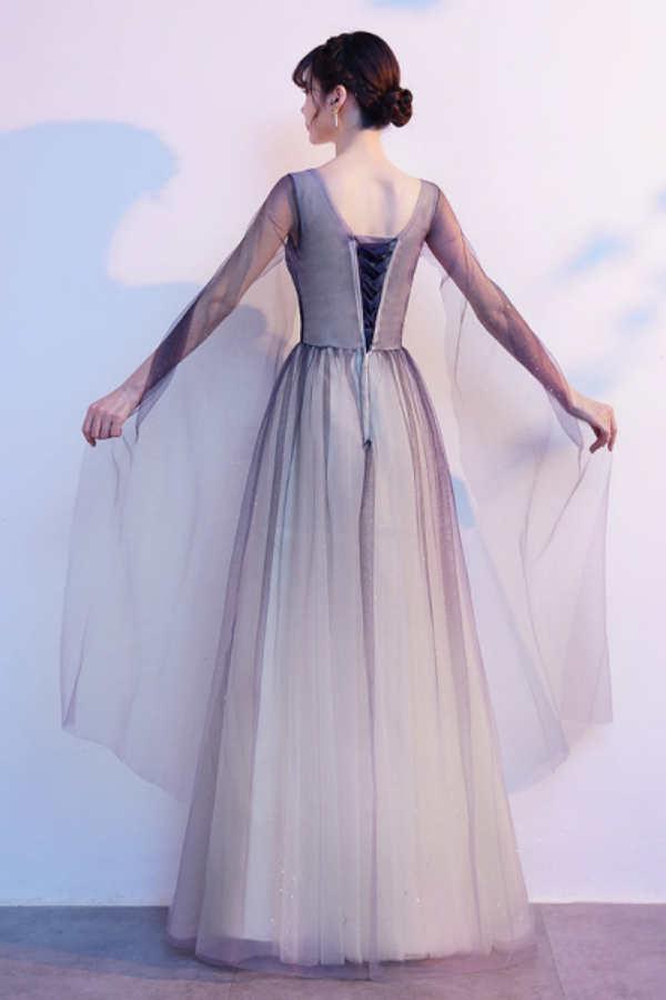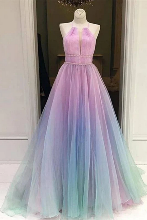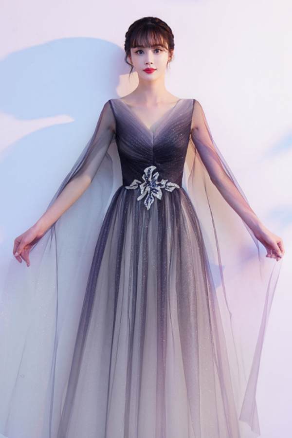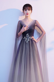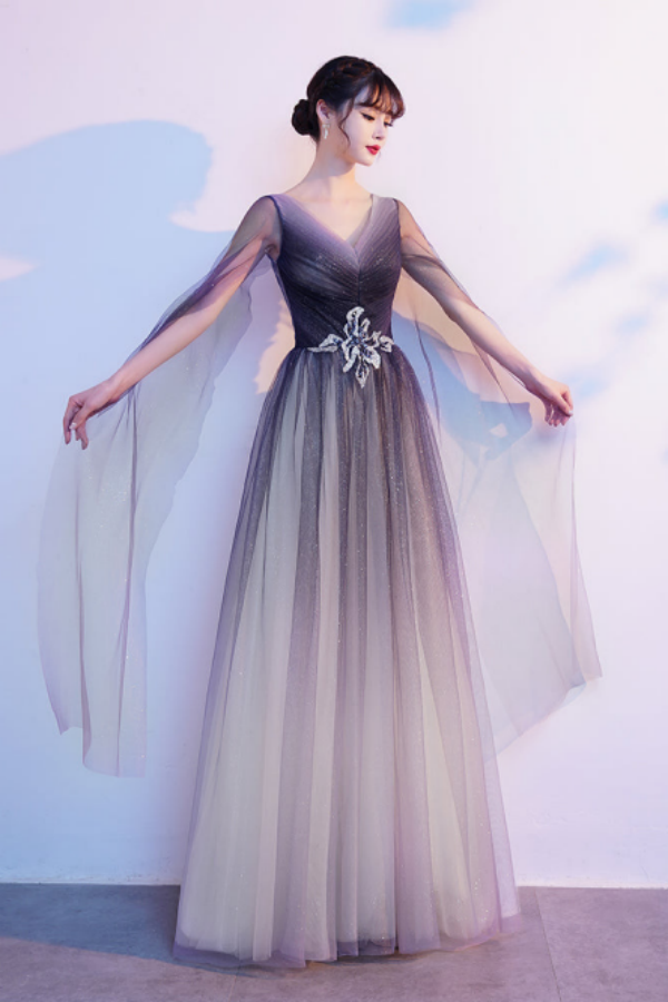 Tulle Gradient V Neckline Tulle Party Dress, A Line Gradient Evening Dress Party Dress PFP2483