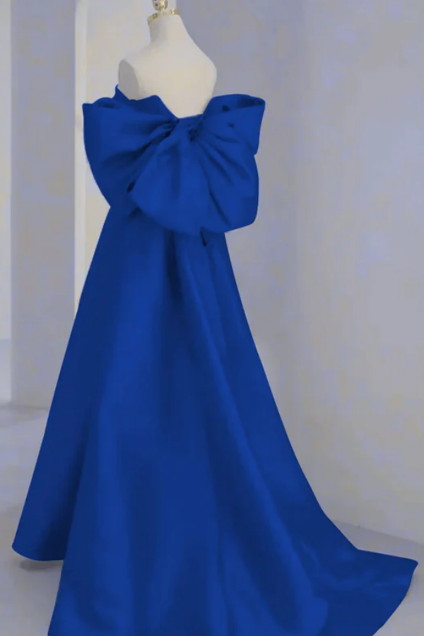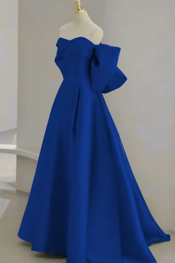 A Line Royal Blue Satin Sweetheart Off Shoulder Party Dress, Prom Dress PFP2887