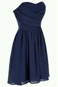 Simple Navy Blue Short Chiffon Homecoming Dress Bridesmaid Dress PFB0075