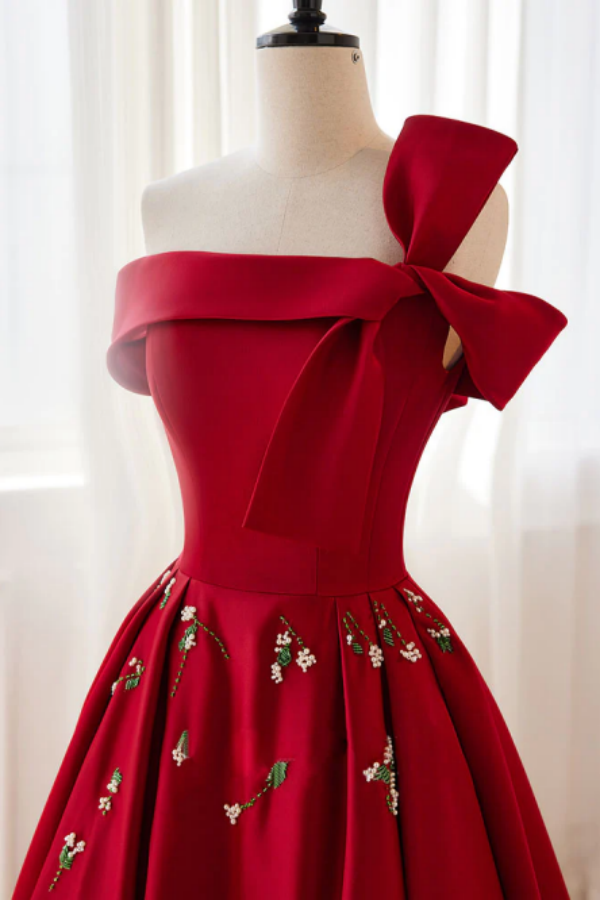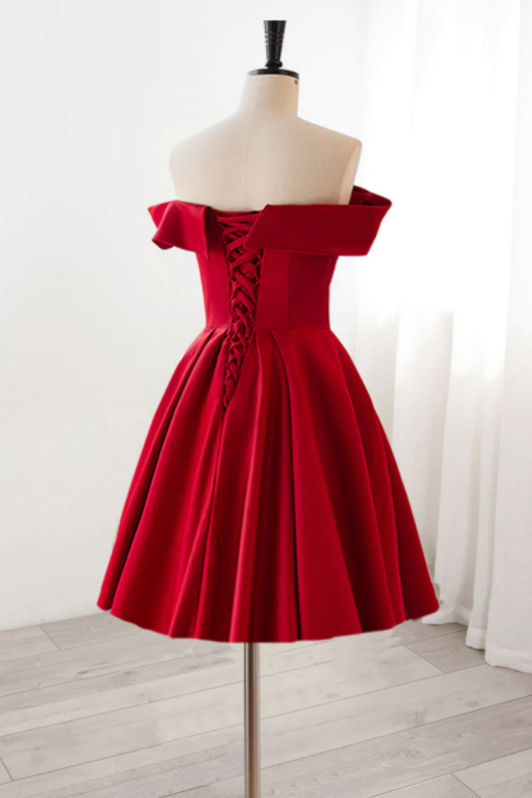 A Line Satin Burgundy Short Prom Dress, Burgundy Homecoming Dress with Beading PFH0497