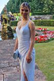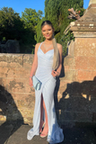 Sparkly Lace Spaghetti Straps Neckline Sweep Train Sheath Prom Dress PFP2297