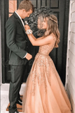 Tulle A Line Beaded Prom Dresses With Lace Appliques, Formal Dresses PFP2340