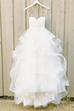 Simple Strapless White Tulle Long Cheap Princess Beach Wedding Dresses PFW0004