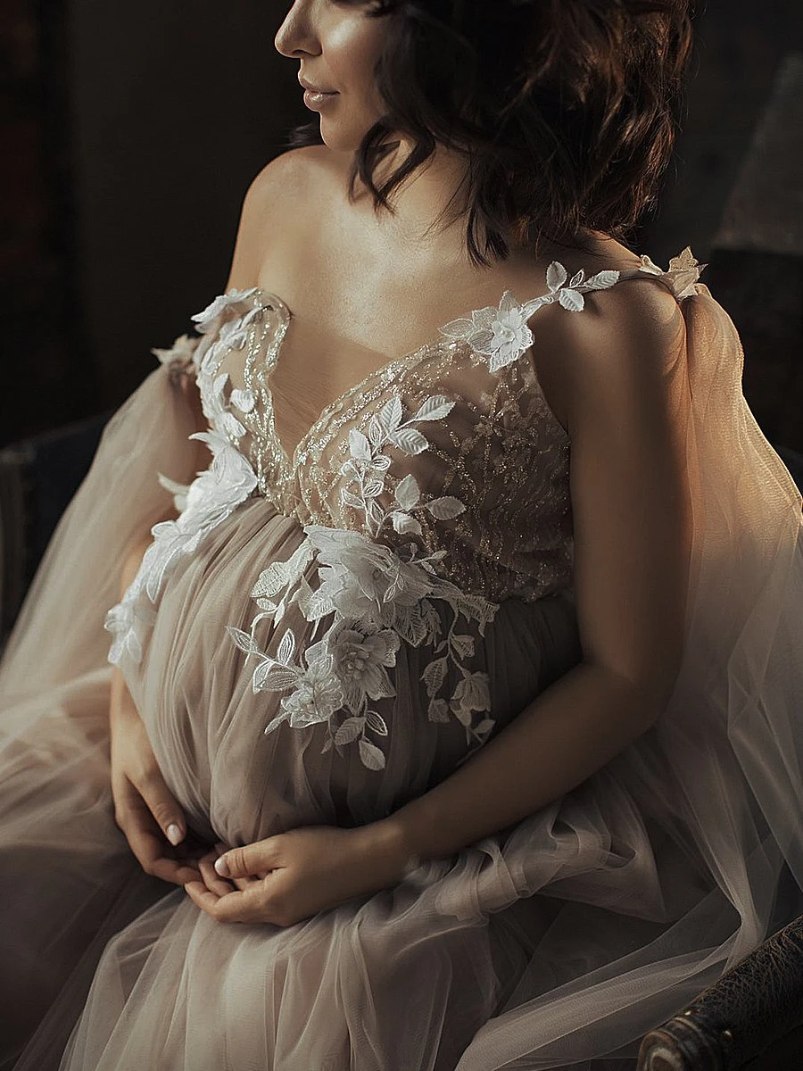Promfast Sexy Maternity Dress online, Elegant Soft Lace Wedding Dress PFW0497