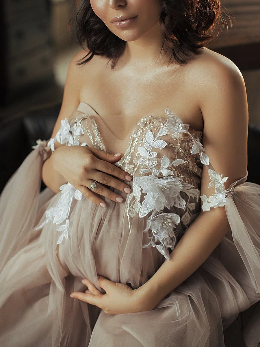 4.Embellishment: beading, embroidery, appliques, handmade flowers, handmade ruffles are available.