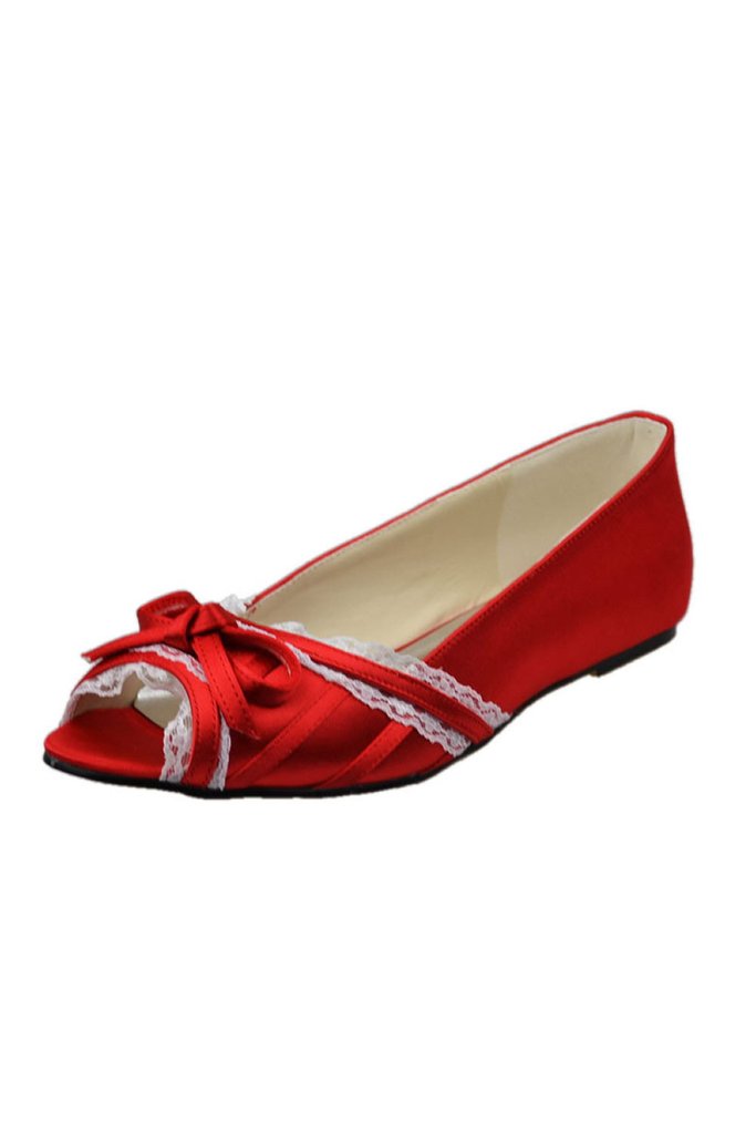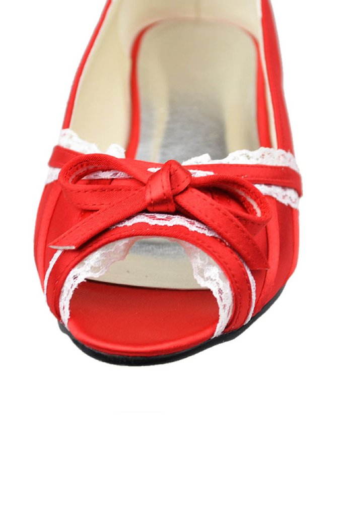 Beautiful Lace Red Peep Toe Handmade Wedding Shoes With Bow Knot PFWS0007