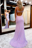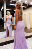 Promfast Chic A Line V Neck Sparkly Long Prom Dresses Sleeveless Evening Dress With Split PFP2143