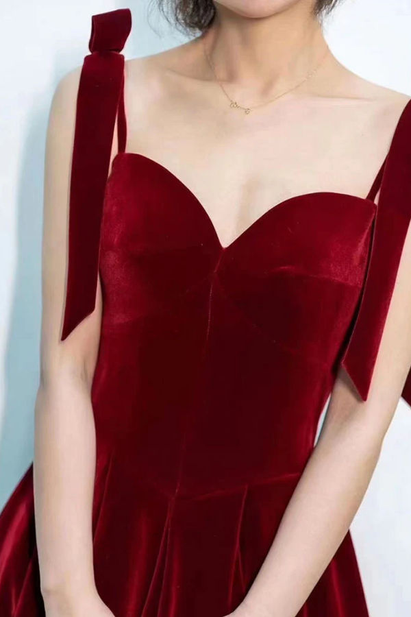 A Line Sweetheart Neck Velvet Burgundy Long Prom Dress, Formal Dress PFP2914