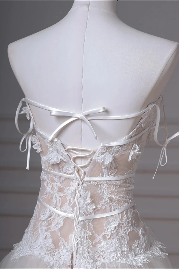 A Line Tulle Lace Ivory Long Prom Dress, Ivory Long Formal Dress PFP2865