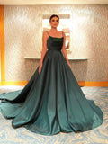 A-line Spaghetti Straps Dark Green Long Prom Dresses Evening Dress PFP1704