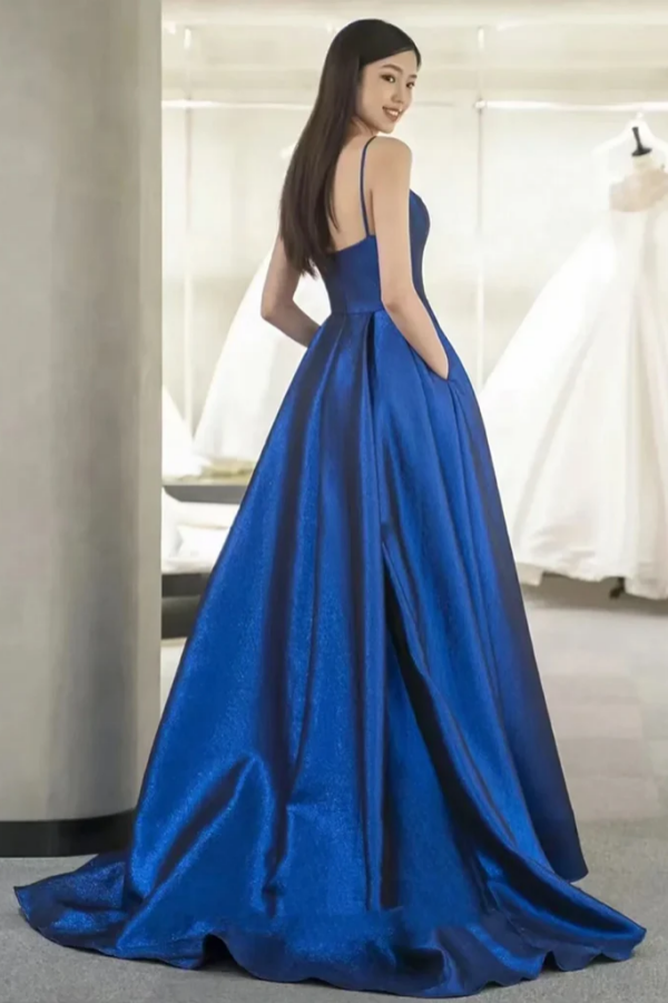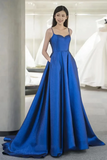 A Line Sweetheart Neck Satin Blue Long Prom Dress, Blue Long Formal Dress PFP2580