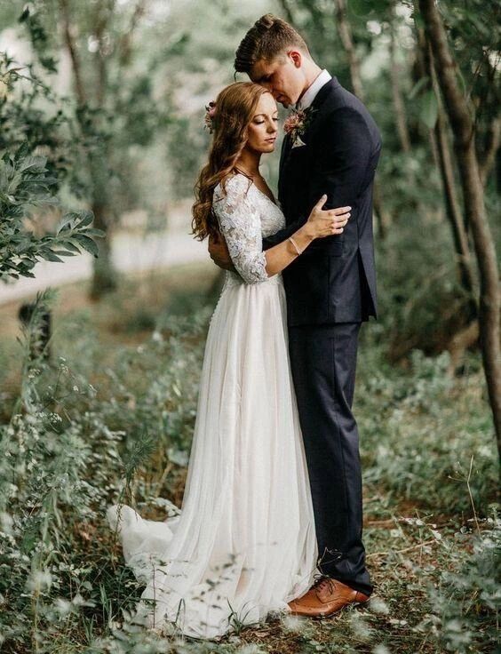 A-Line V-Neck Half Sleeves Backless Tulle Wedding Dresses with Lace Top PFW0378