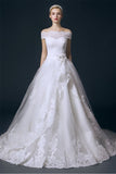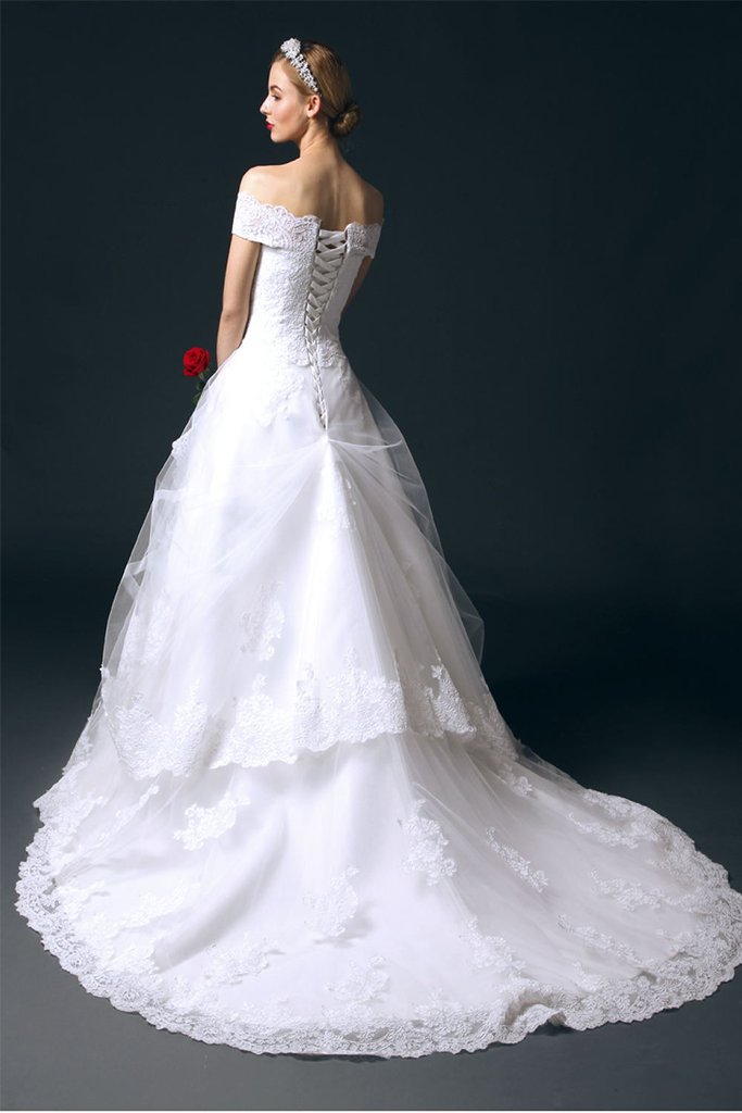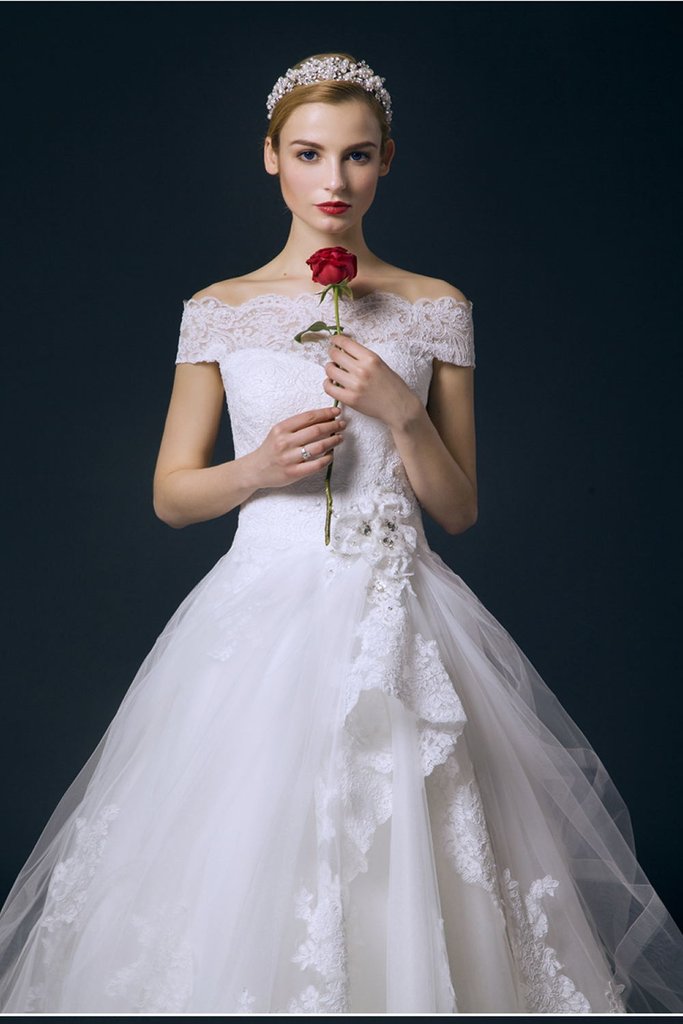 Boat Neck Long Ball Gown Big Wedding Dresses With Flower PFW0293