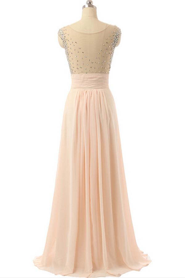 Cap Sleeves Chiffon Empire Waist Beaded Long Prom Dresses PFP1279