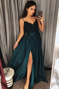 Dark Green Spaghetti Straps Split Lace Long Prom Dress PFP0325