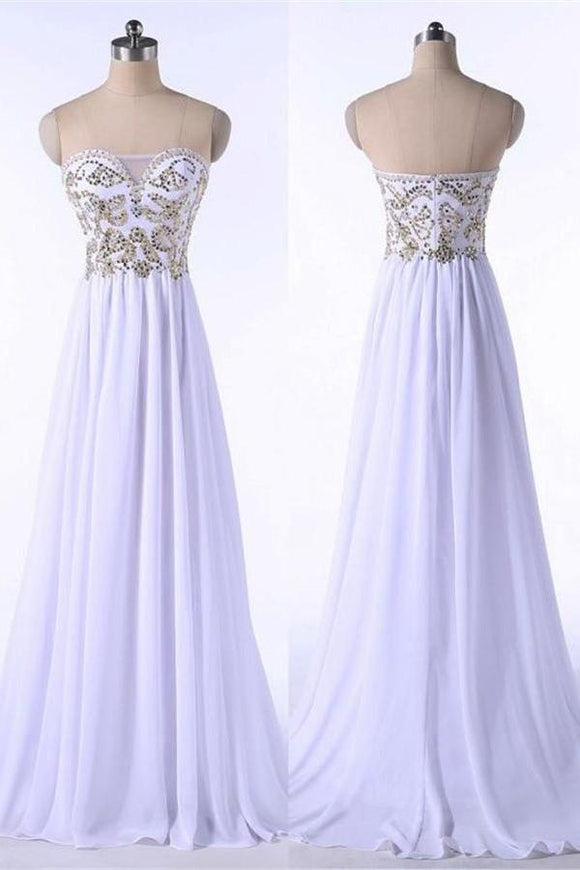 Elegant White Chiffon High Low Beading Sweetheart Neckline Prom Dresses PFP1180