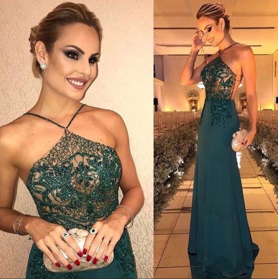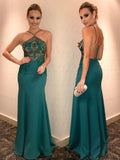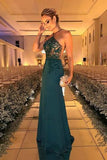Fashion Dark Green Sheath Beading Sleeveless Long Prom Dresses PFP0383