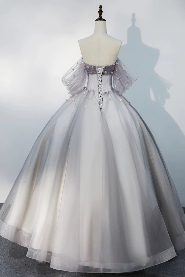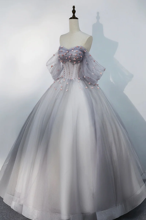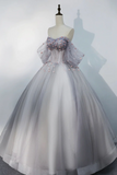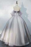 Gray Tulle Floor Length Prom Dress, Off the Shoulder Evening Party Dress PFP2636