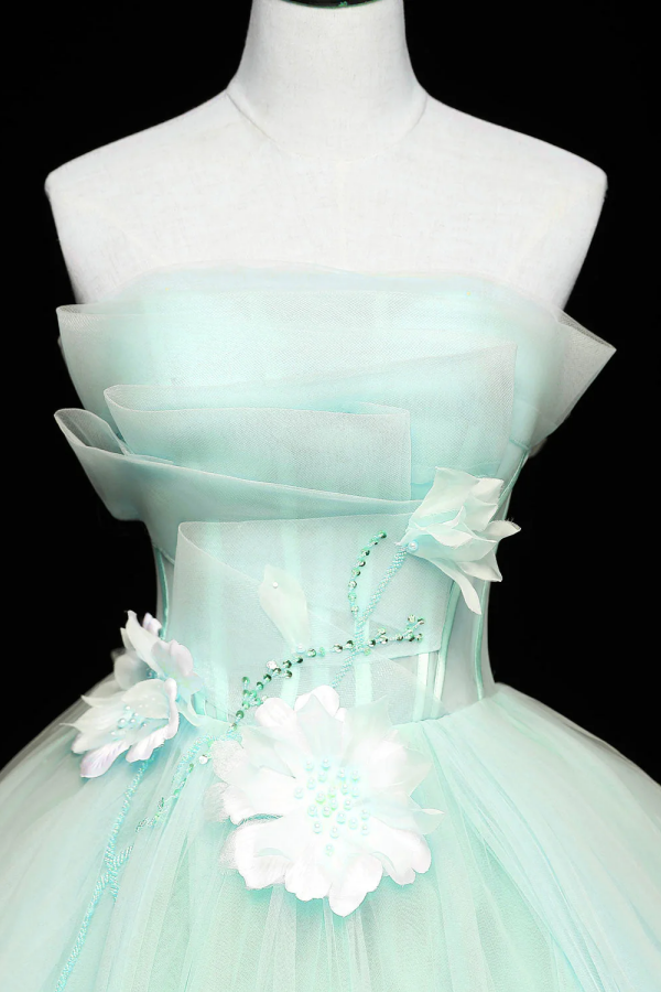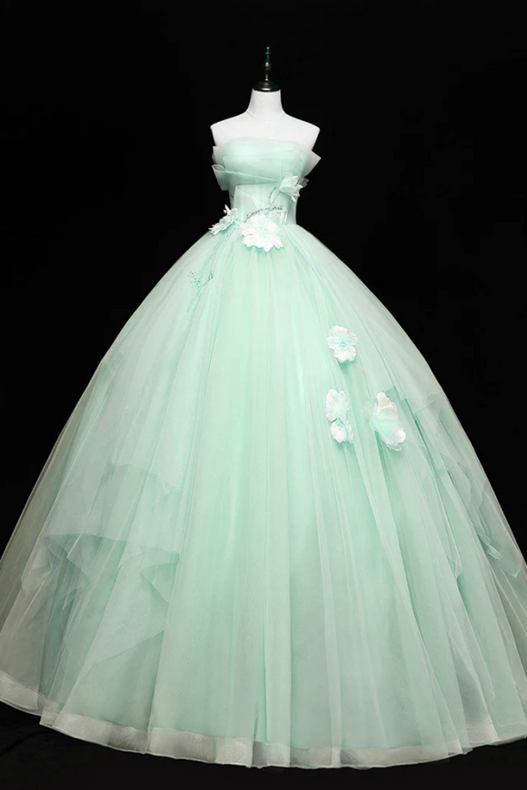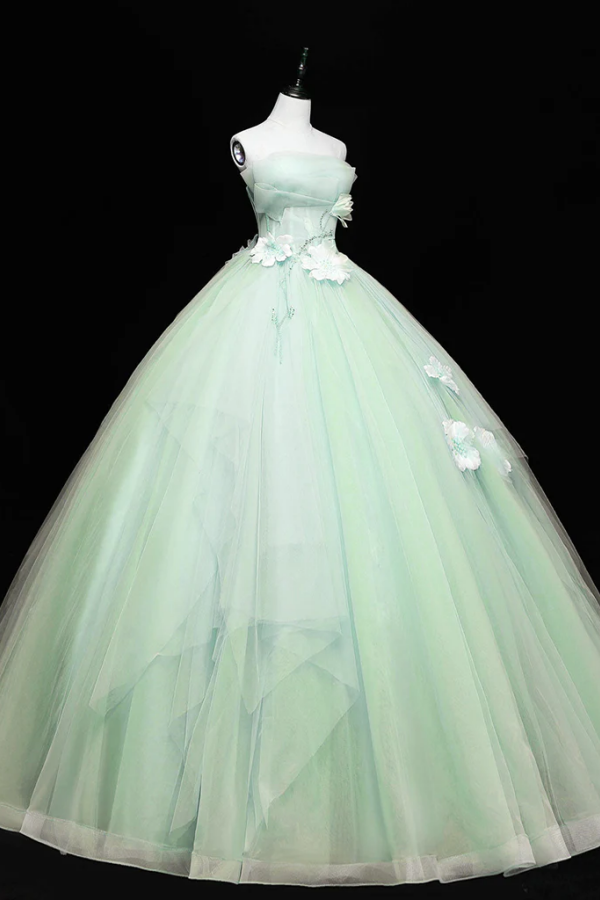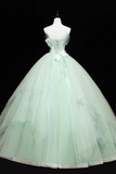 Green Tulle Lace Applique Long Prom Dresses, Green Sweet 16 Dresses PFP2496