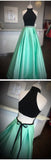 High Neck Two Piece Black And Mint Green Beads Long Prom Dress PFP0090