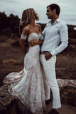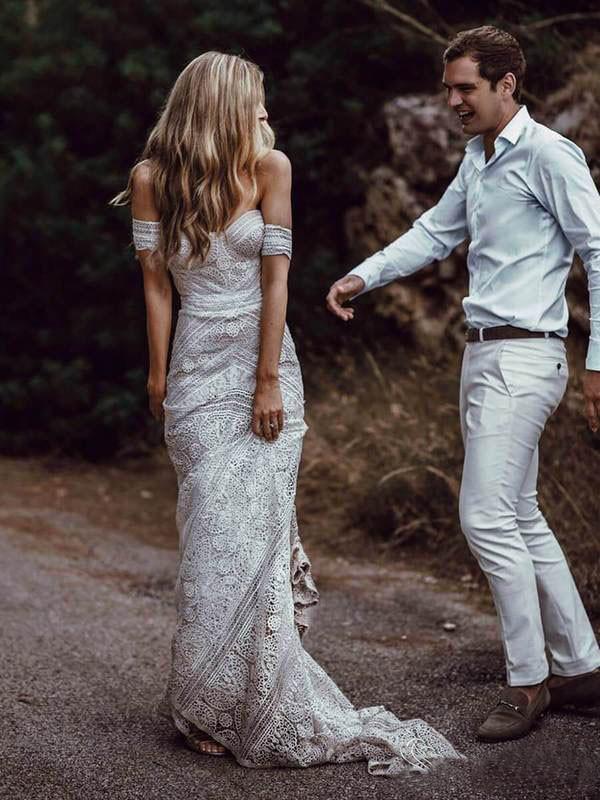 Ivory Lace Sheath Sweetheart Neck Boho Beach Wedding Dresses PFW0021