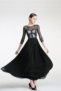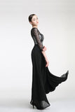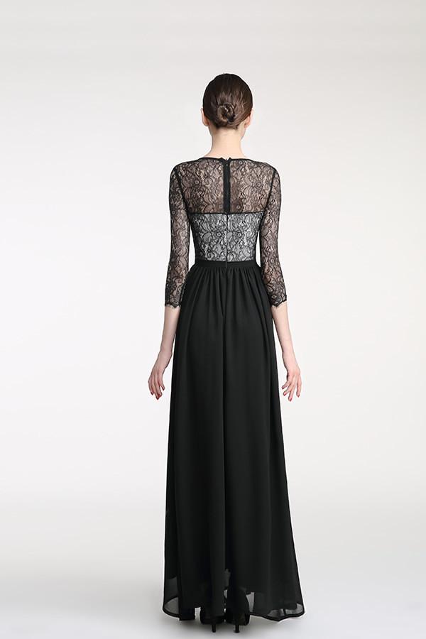 Long Sleeves Black Lace Cap Sleeves Prom Party Dresses PFP1304