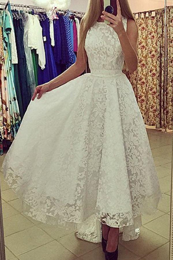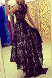 Modest Black Lace Long High Low Charming Prom Dresses PFP1216