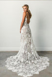 New Arrival Lace Backless V Neck Ivory Spaghetti Straps Beach Wedding Dresses PFW0080