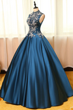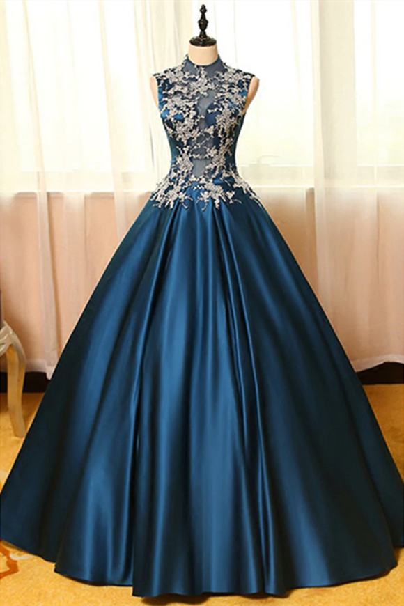 Promfast Chic Prom Dresses Appliques High Neck Ball Gown Long Prom Dress Evening Dress PFP2257