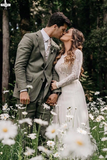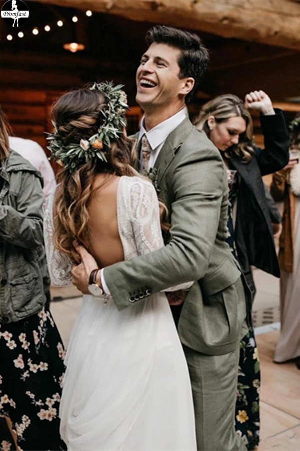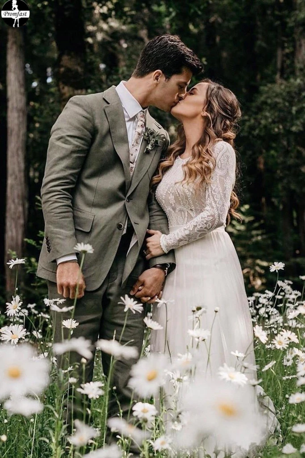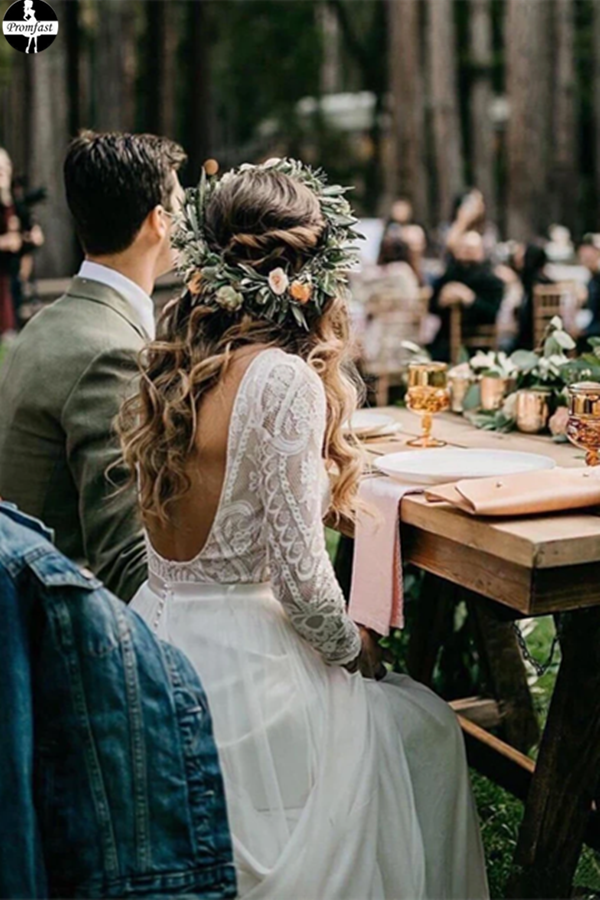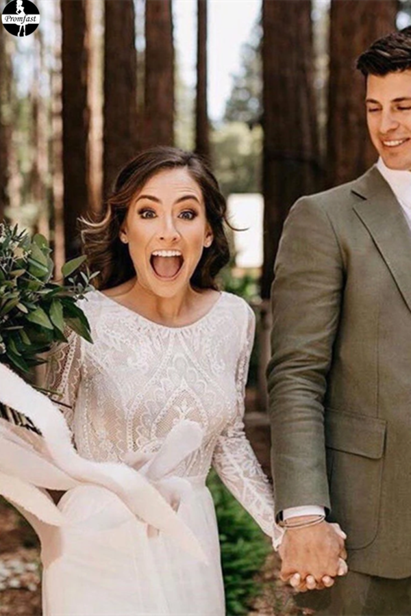 Promfast Scoop Long Sleeve Lace Wedding Dresses Vintage Romantic Wedding Gowns Bridal Gown PFW0522