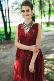 Promfast Unique Burgundy Prom Dresses V Neck Straps Long Lace Appliques Party Dresses PFM0007