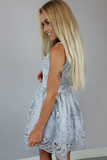 Promfast V Neck Sleeveless Homecoming Dresses,Lace Up Appliques Short Prom Dress PFH0363