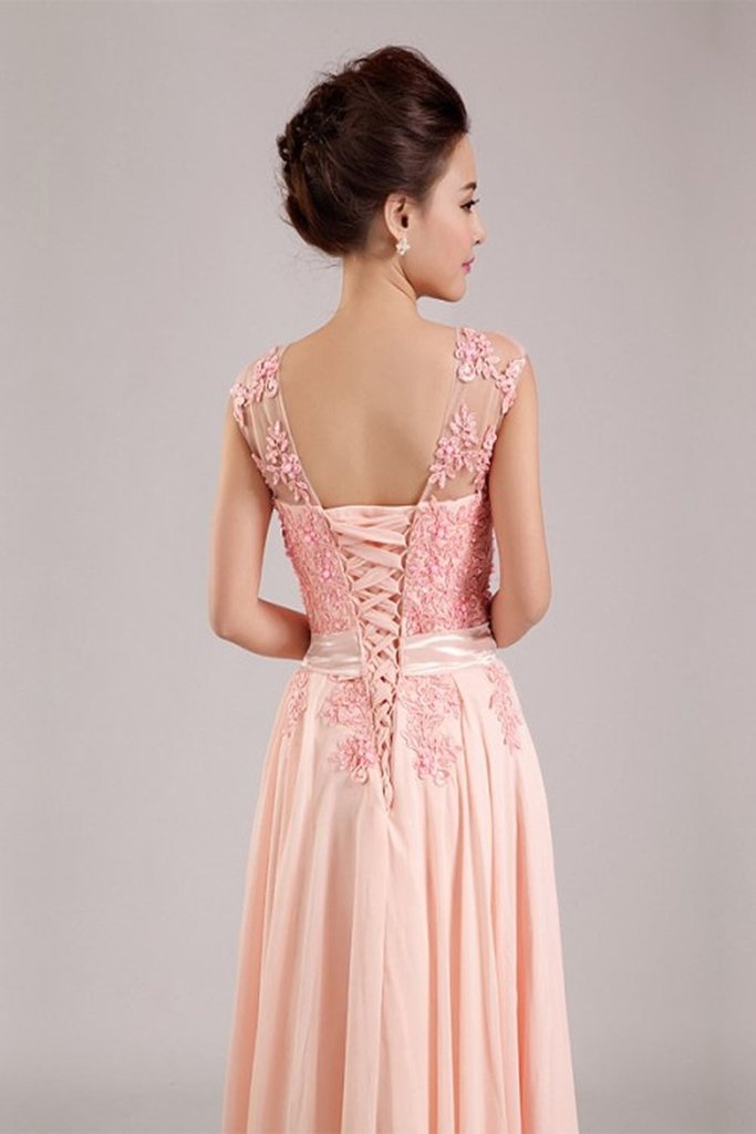 Real Beauty Long Lace Blush Pink Back Up Lace Prom Dresses PFP1227