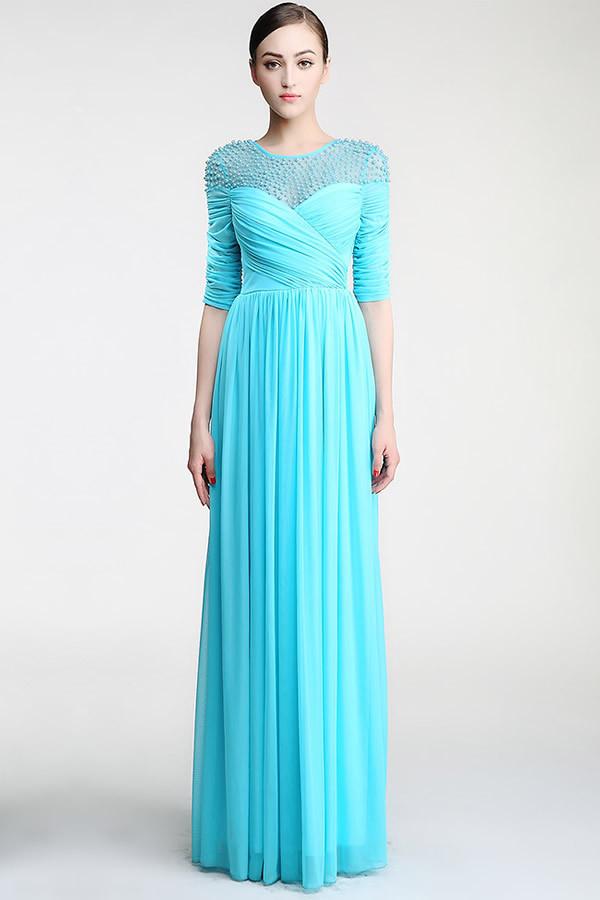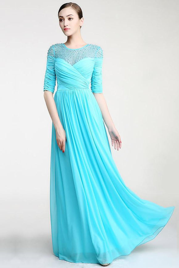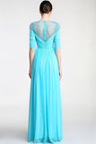Real Nice Light Sky Blue Chiffon Half Sleeves Prom Dresses PFP1297