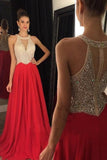 Red Skirt Beaded Bodice Long Deep V Neck Prom Gowns,Fashion Women Dresses PFP0434
