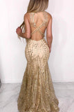 Sexy Mermaid Illusion Neck Ruffles Gold Long Prom Dress PFP1392