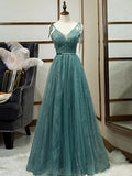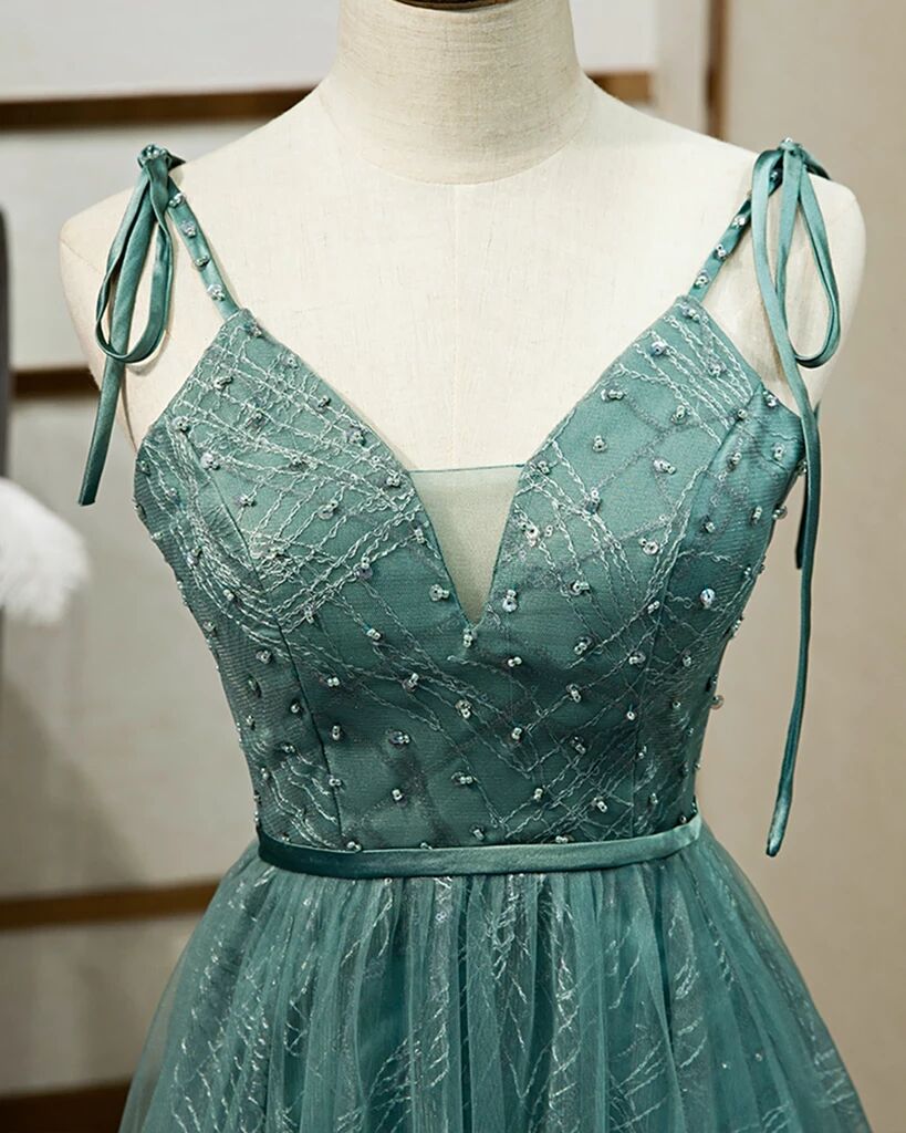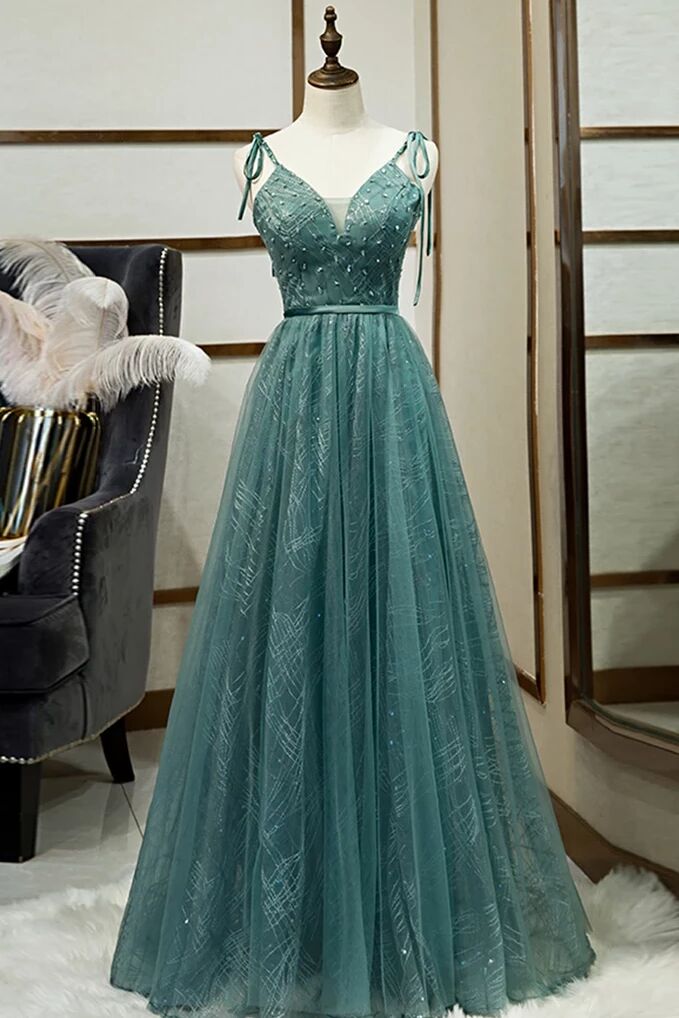 Spaghetti Straps Tulle Modest A Line Evening Dress Long Prom Dress PFP1681
