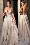 Sparkly Deep V Neck Wedding Dress Bridal Gown,Sequin Prom Dresses PFW0027