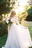 Two Piece Long Sleeves Chiffon Beach Wedding Dress With Lace PFW0439