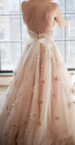Vintage Strapless Sweetheart A Line Flower Tulle Pearl Pink Wedding Dress PFW0164